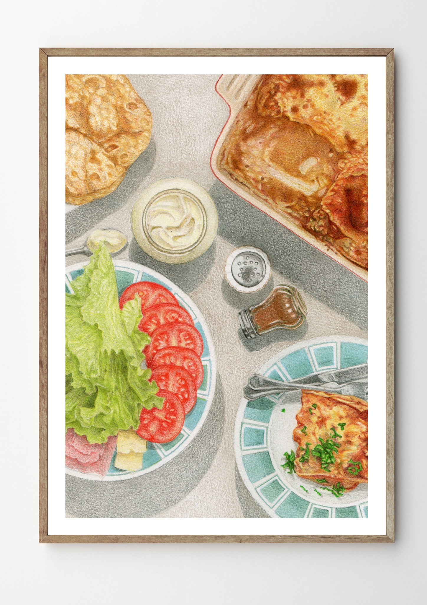 Lunch limited edition print of original hand drawing. This is a giclee print on heavy 308gsm matt fine art paper.