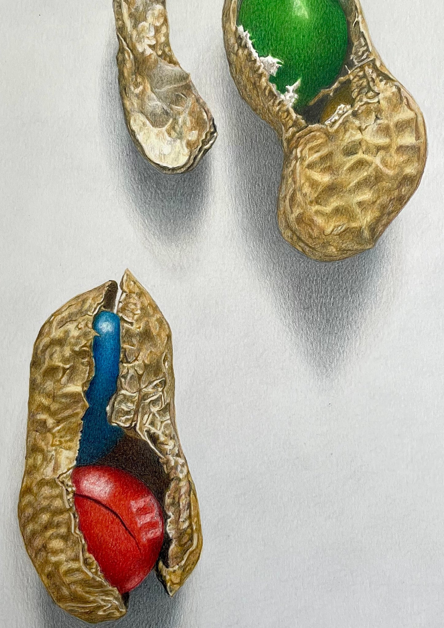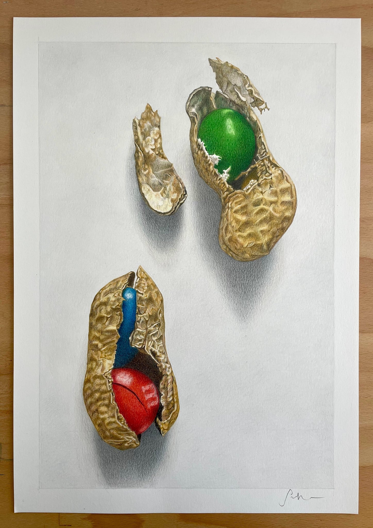 Monkey Nuts original colour pencil drawing on heavy cartridge paper signed by the artist Sarah Evans.